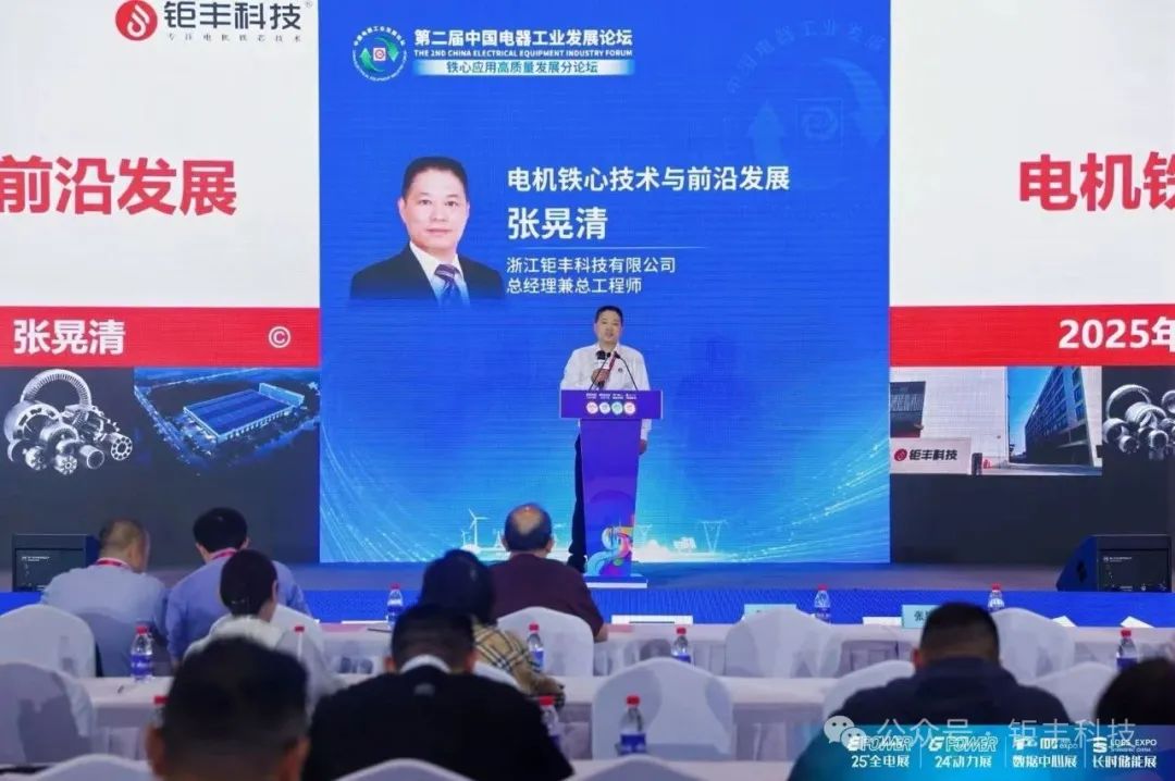 Zhang Huangqing, tổng giám đốc kiêm kỹ sư trưởng của Công ty TNHH Công nghệ Jufeng Chiết Giang, được mời tham dự báo cáo mang tên "Công nghệ lõi sắt động cơ và sự phát triển tiên phong". Dựa trên nhu cầu thị trường không ngừng tăng lên, ông đã phân tích sâu sắc lộ trình kỹ thuật của Iron Core để đáp ứng nhu cầu về hiệu suất và chi phí. Sự hiểu biết sâu sắc về công nghệ sản xuất lõi sắt và kết quả nghiên cứu mới nhất của ông trong lĩnh vực sản xuất lõi sắt đã được những người tham gia đánh giá cao. Là một nền tảng để ươm mầm và quy tụ những tinh hoa và tài năng chuyên môn trong ngành, Jufeng Technology đang thúc đẩy sự tiến bộ và nâng cấp không ngừng công nghệ của ngành. Jufeng Technology sẽ tiếp tục đóng góp cho khách hàng, các ngành công nghiệp và xã hội.