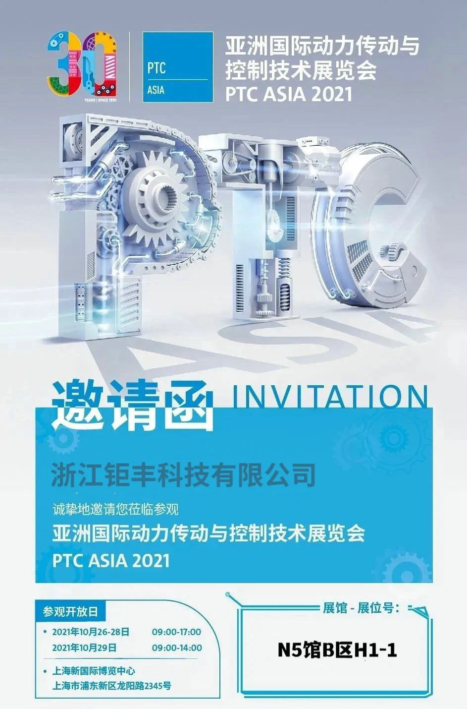 Cảm ơn bạn rất nhiều vì đã tiếp tục ủng hộ và yêu mến Jufeng! Triển lãm Công nghệ Điều khiển và Truyền tải Điện Quốc tế Châu Á PTC ASIA sẽ khai mạc tại Trung tâm Triển lãm Quốc tế Mới Thượng Hải vào ngày 26 tháng 10 năm 2021! Khi đó chúng tôi sẽ đợi các bạn tại gian hàng H1-1, Khu B, Hội trường N5, rất mong được các bạn ghé thăm và hướng dẫn, mong được cùng các bạn chung tay giành thắng lợi trong tương lai!